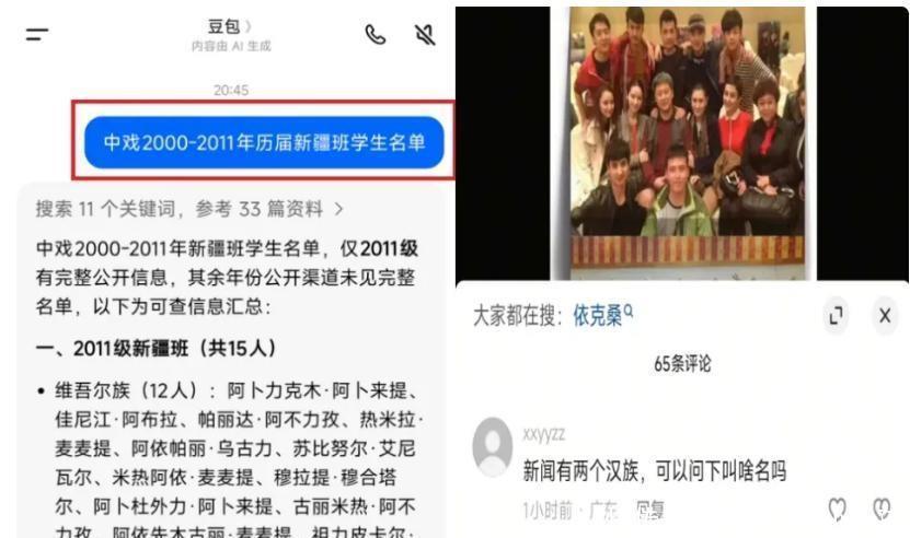 第二冤:凭空捏造的“特权班”这个就更离谱了,堪称无稽之谈里的“战斗机”。先是有中戏官方亲自下场辟谣,白纸黑字证明她儿子林傲霏是2012级表演系的普通学生,当年压根就没有什么“新疆班”。接着,真正的2011级新疆班毕业生也站出来打假,指出网上流传的那份“名单”根本就是P图造假的产物,纯属为了喂给AI造谣而生。更绝的是,网友连林傲霏和同学们的毕业大合影都扒出来了,铁证如山,可依然堵不住那些“我不听我不听”的嘴。有时候吧,有些人不是眼睛瞎,是心选择性失明,只愿意相信他们想相信的所谓“黑幕”。